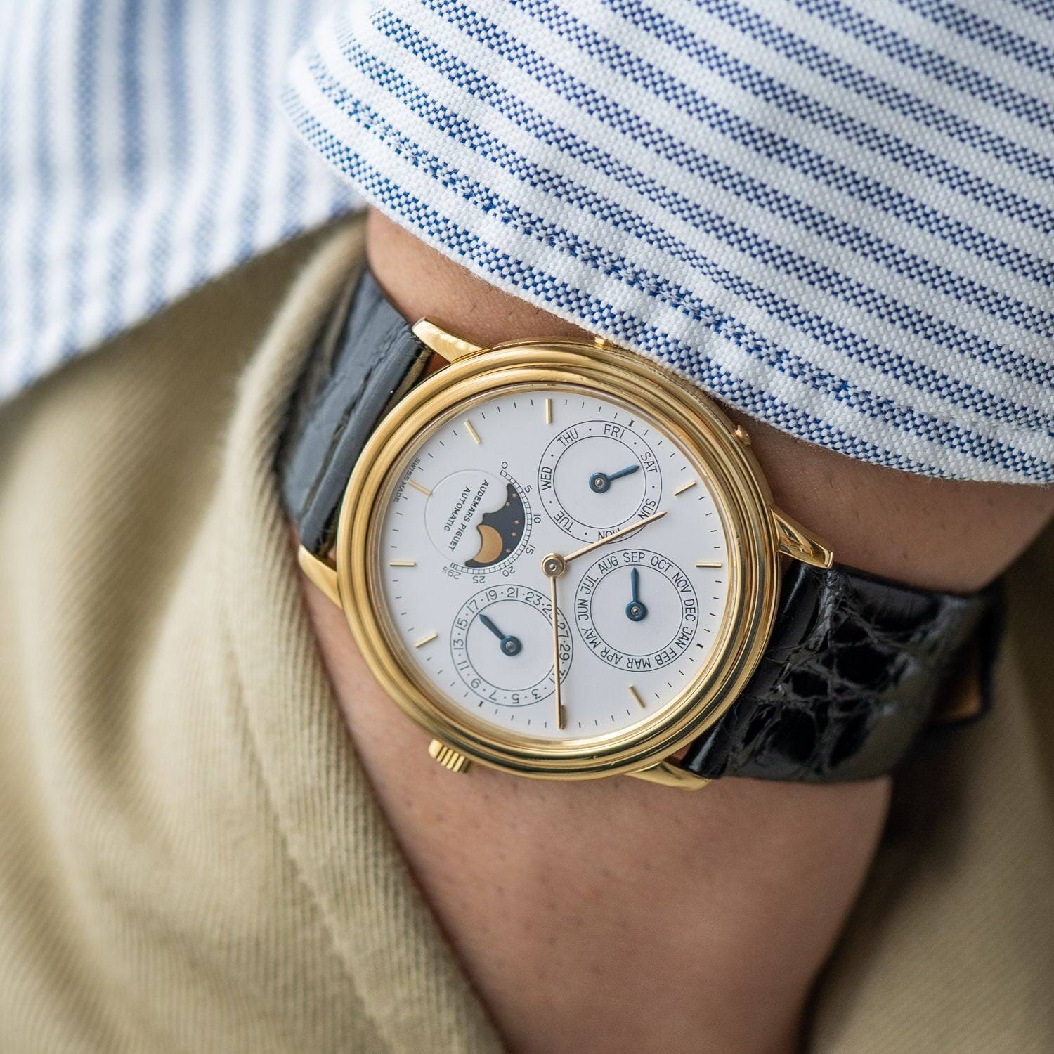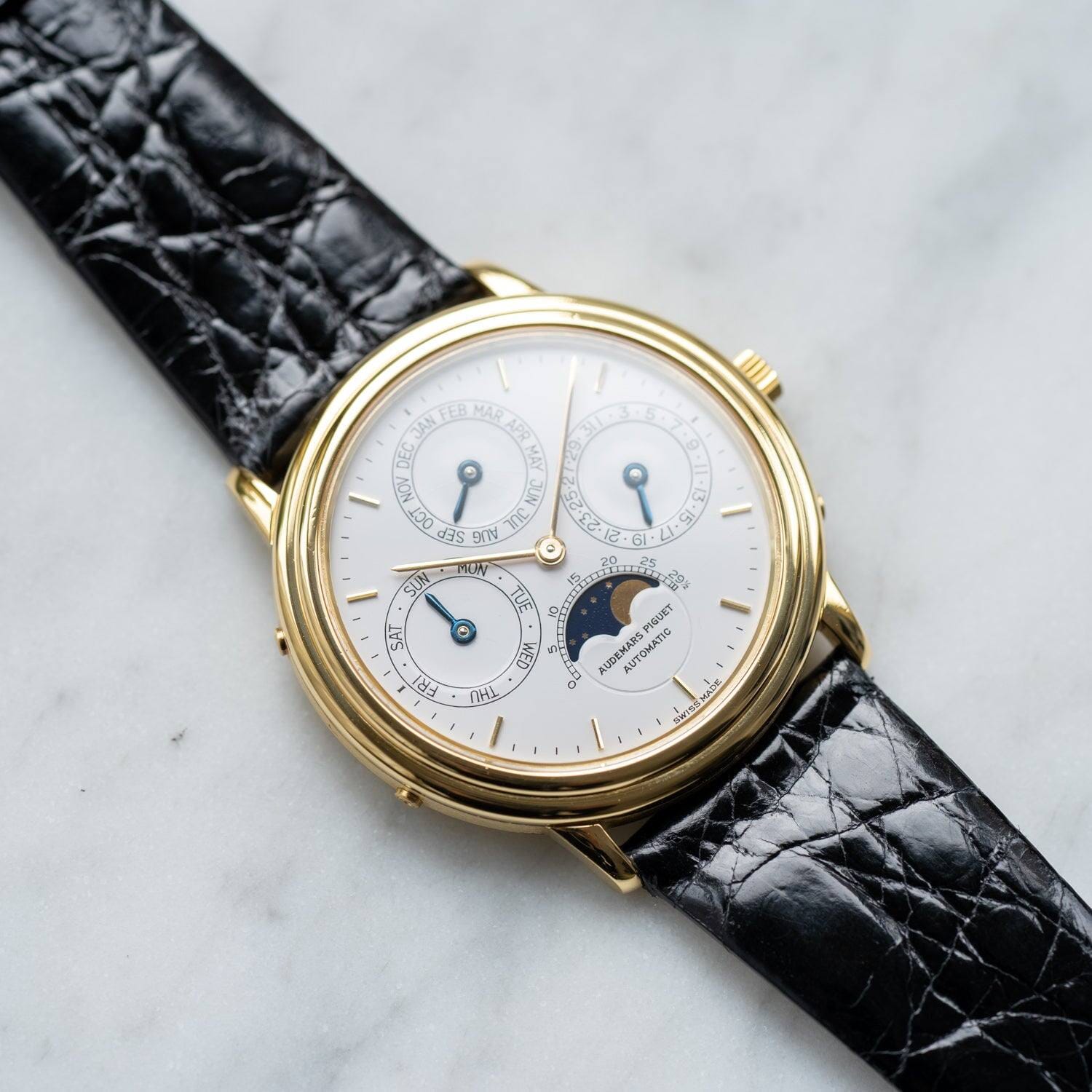 クォーツ危機と言われた時代のオーデマ ピゲを救ったのはロイヤルオークとされていますが、実はこのパーペチュアルカレンダーも会社の安定に大きな影響を与えました。