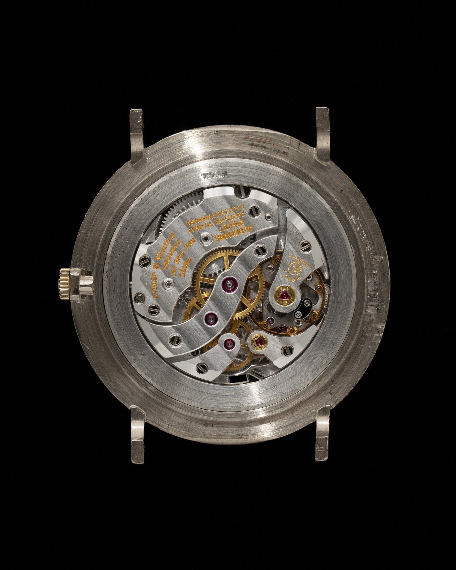 ムーブメントは手巻きのCal.K2001/1Aを搭載しています。 ベースは1959年に開発されたジャガールクルトのCal.818で、ヴァシュロン・コンスタンタンとオーデマ ピゲのみに供給されました。