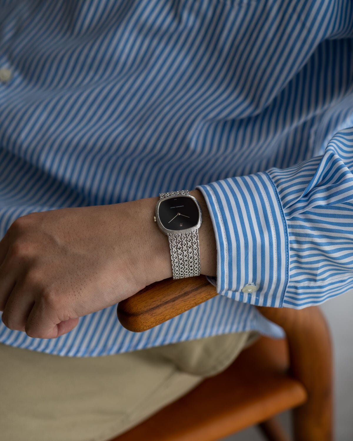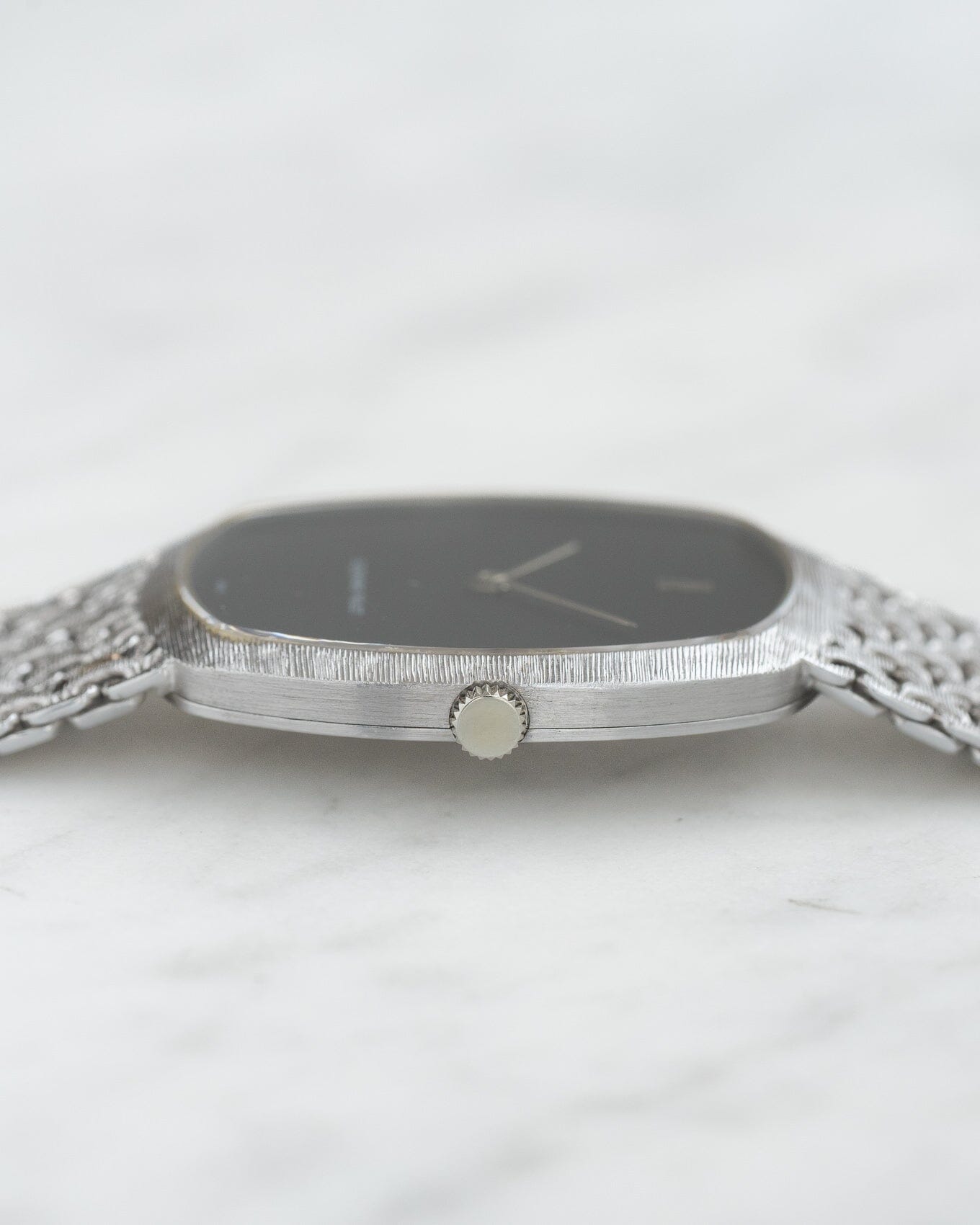 こちらの時計は1970年代に製造された手巻きのブレスレット一体型ドレスウォッチ。