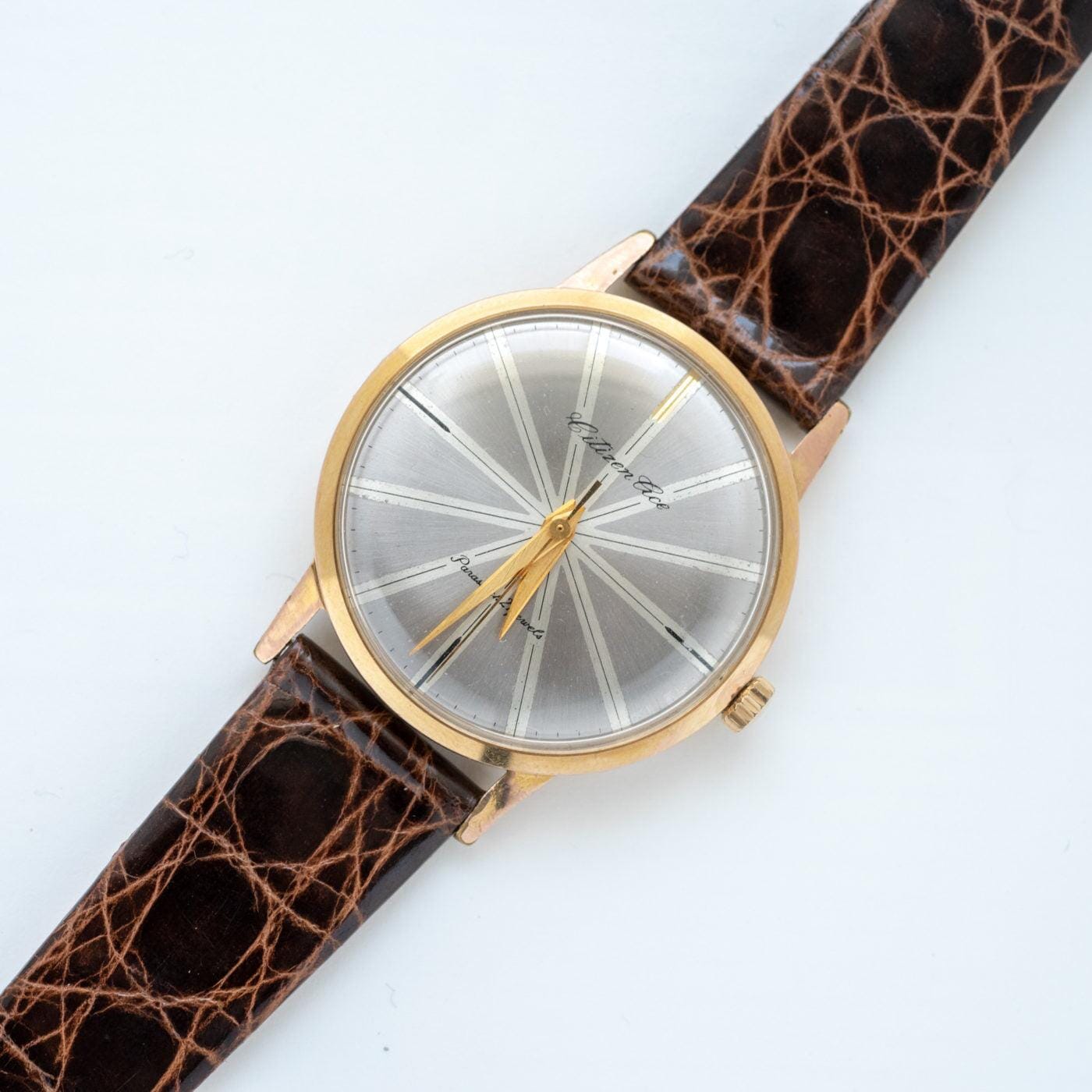 変わり文字盤と呼ばれる、激しいダイアルデザインが目に留まるシチズンのエースという時計です。1961年製。