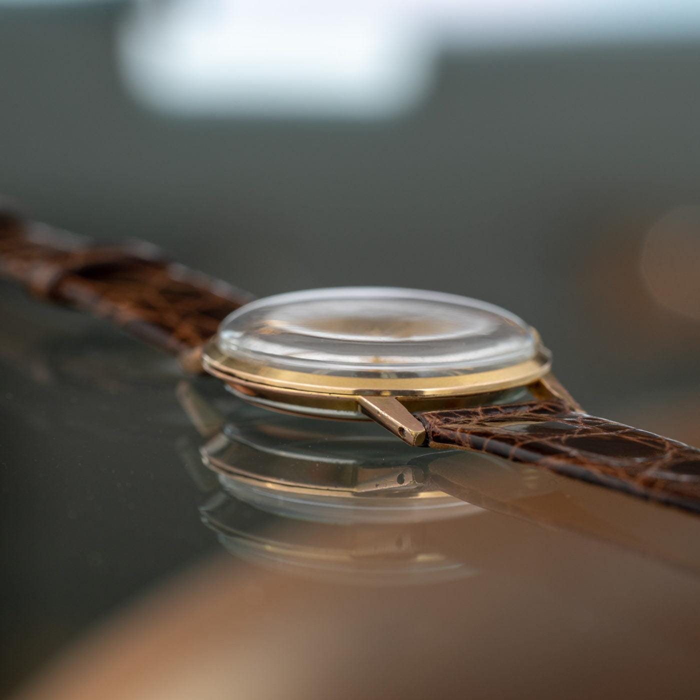 アルビトロで販売している時計で新品仕上げを施したものは非常に高精細で撮影しているためエッジが立っている、鏡面仕上げによって光が反射しているのがお分かり頂けるかと思います。
