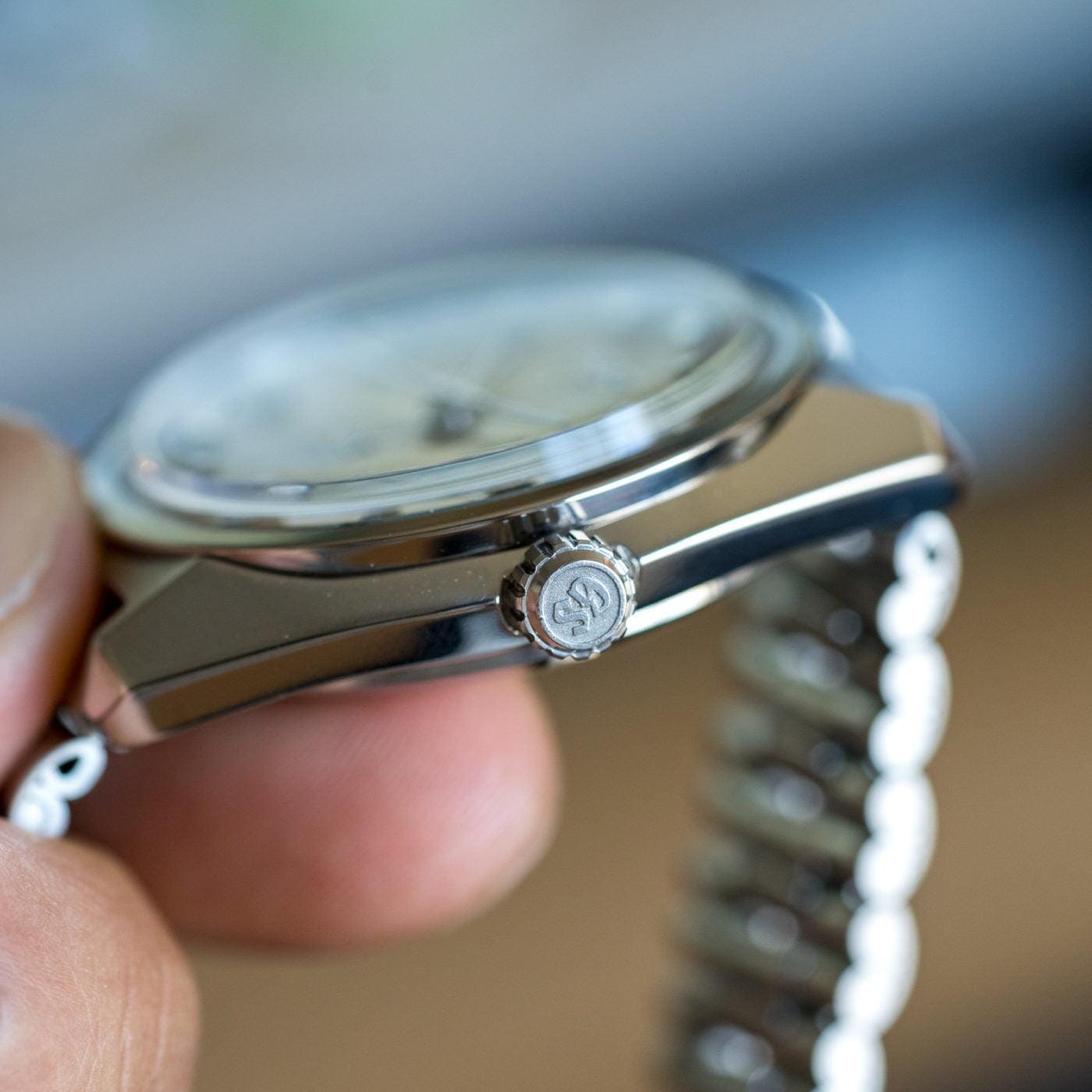 シンプルながら遊びのあるダイアルデザインで50年前の時計という古めかしさは全くありません。