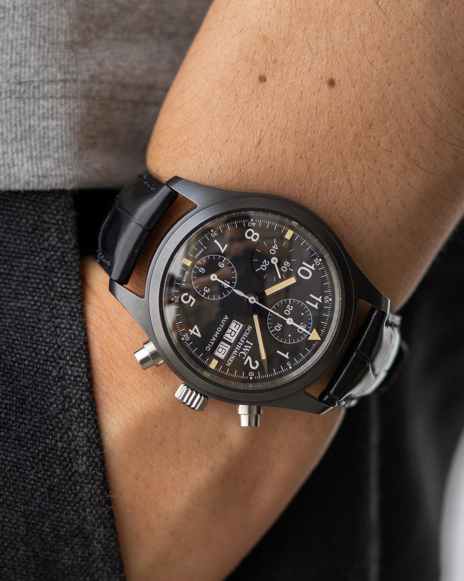 IWC フリーガークロノグラフ 3705 ”ブラックフリーガー" 保証書付き