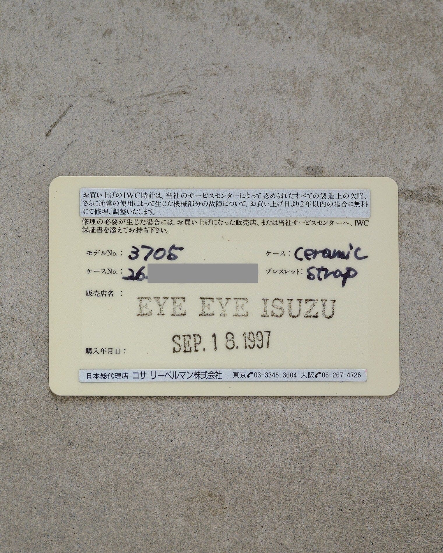 保証書 (国内正規店で1997年に販売された印あり)