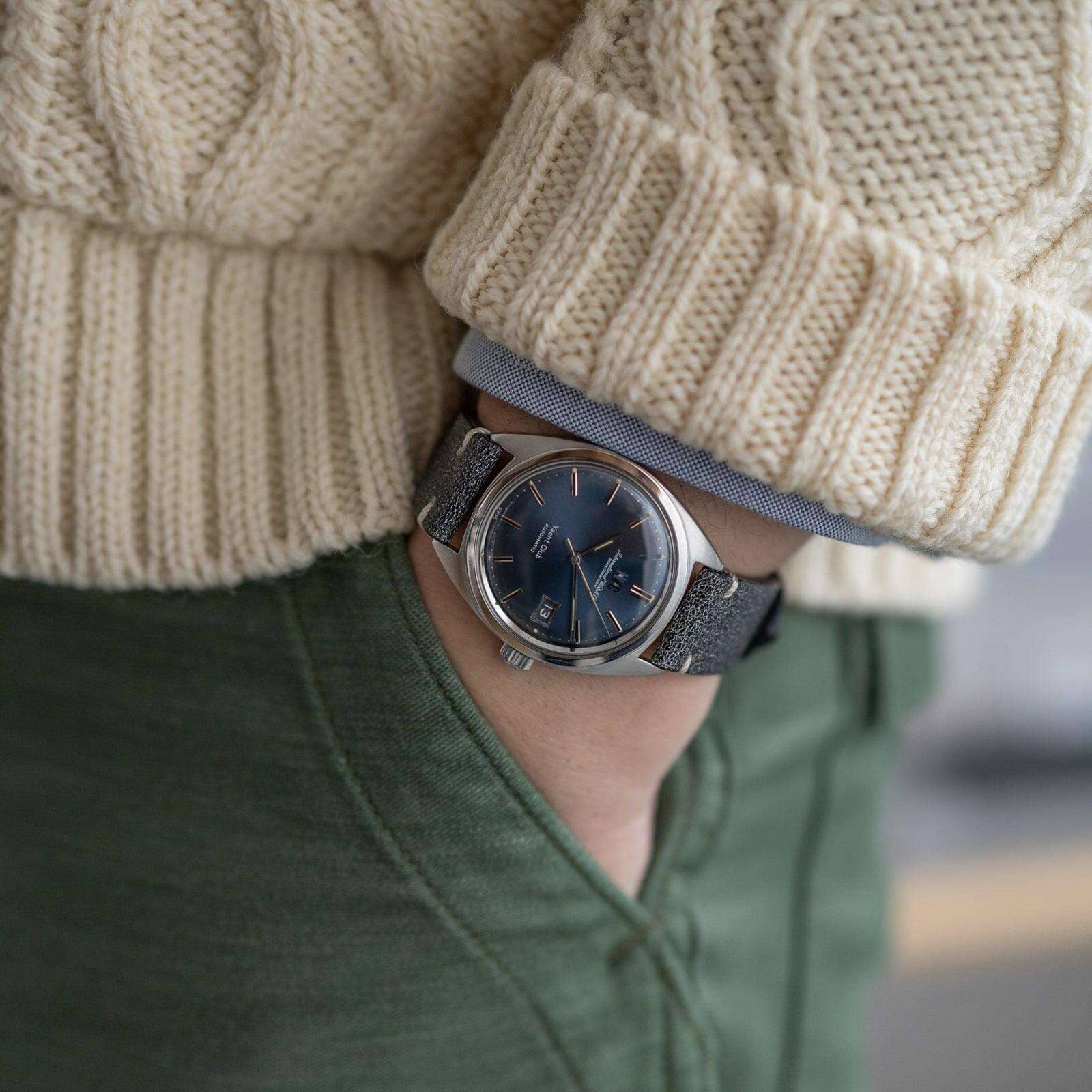 ヴィンテージのヨットクラブは使い勝手の良いサイズ感、どんな格好やシチェーションでも違和感の無いシンプルなデザインが魅力です。シンプルを極めたこのヨットクラブのケースデザインはジェラルド・ジェンタ。