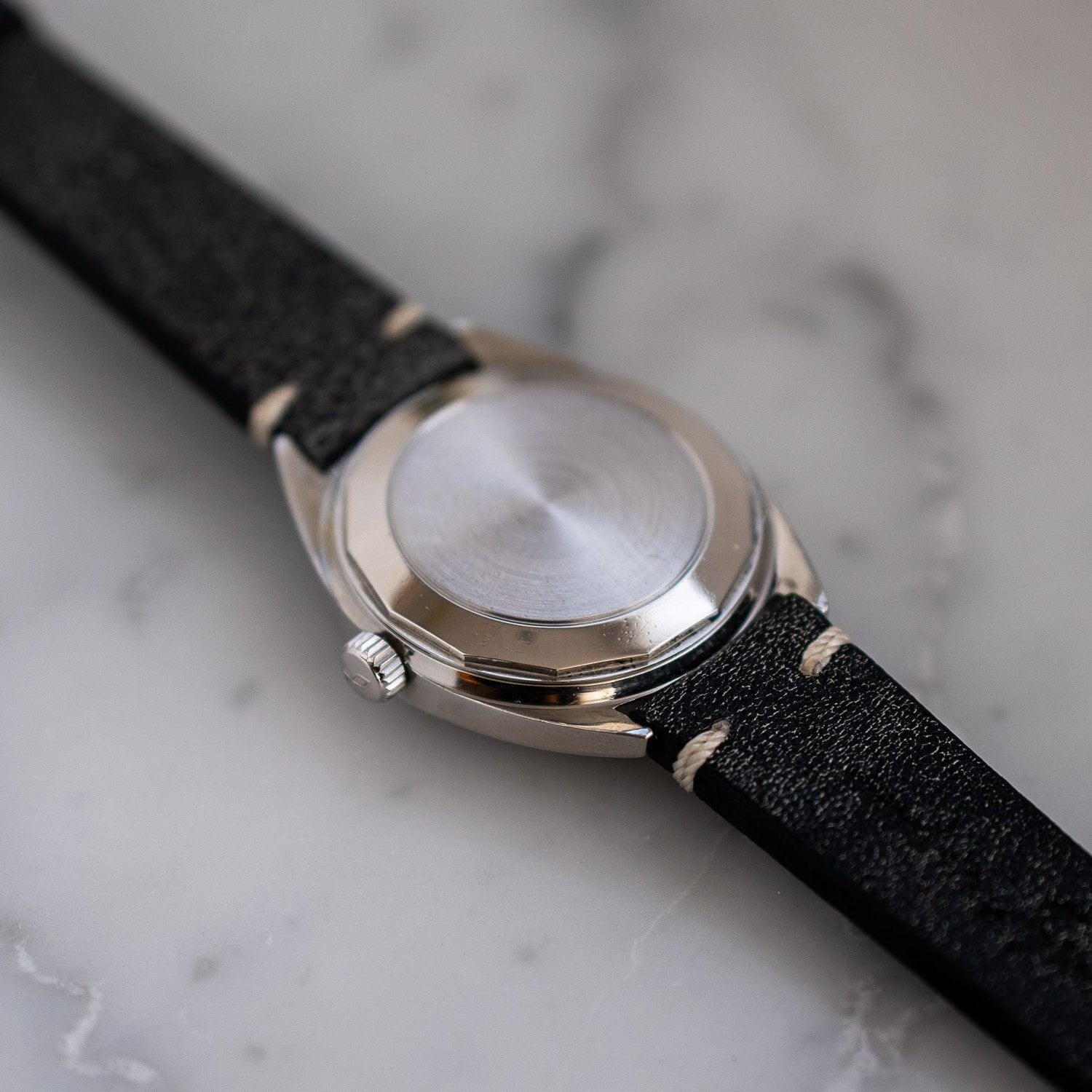 ヴィンテージウォッチは何十年と使用されてきており、多くの時計に使用されるステンレスでも本来角が立っていた部分が丸みを帯びてきたり、鏡面仕上げが美しいはずが小キズが多く入っているという状態になってしまいます。