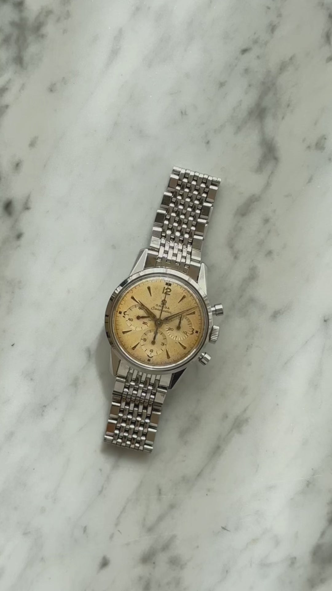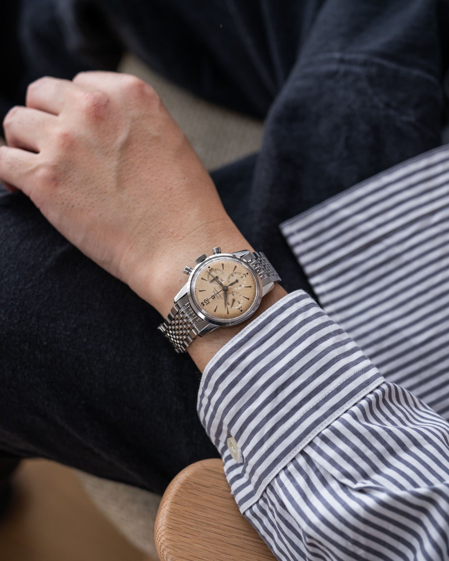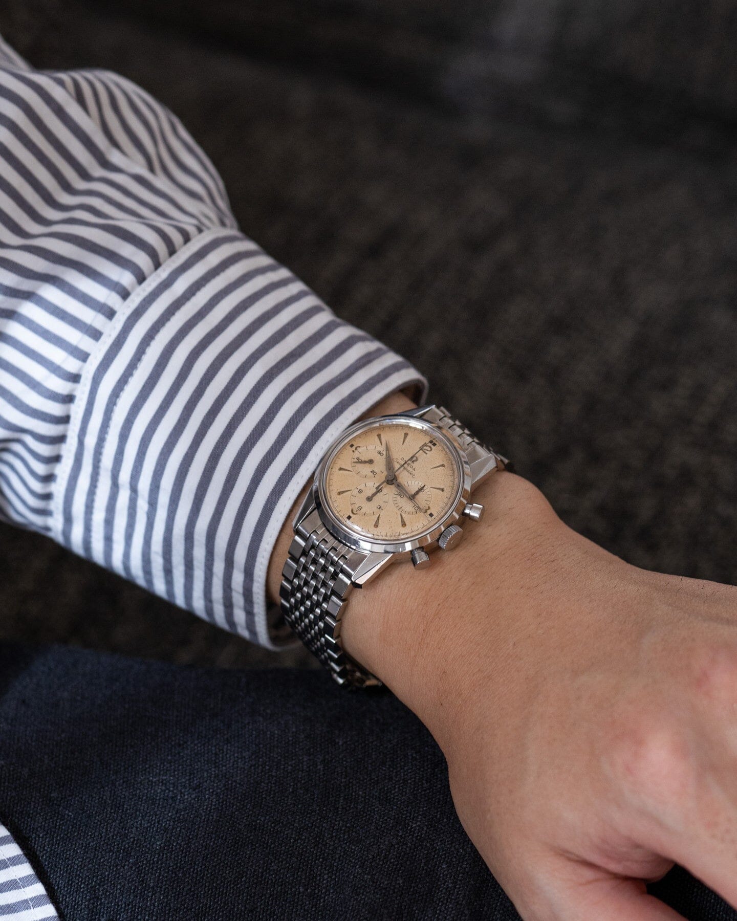 マットなホワイトダイアルが60年という時を経てオレンジがかったアイボリーに変化しており、唯一無二の時計となっています。