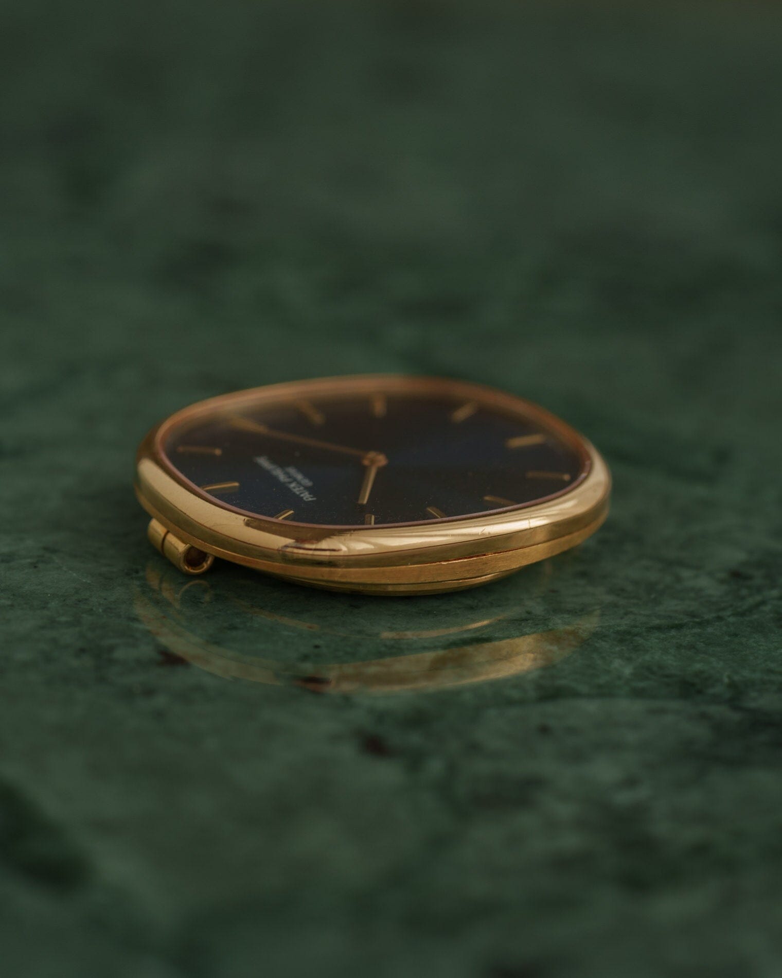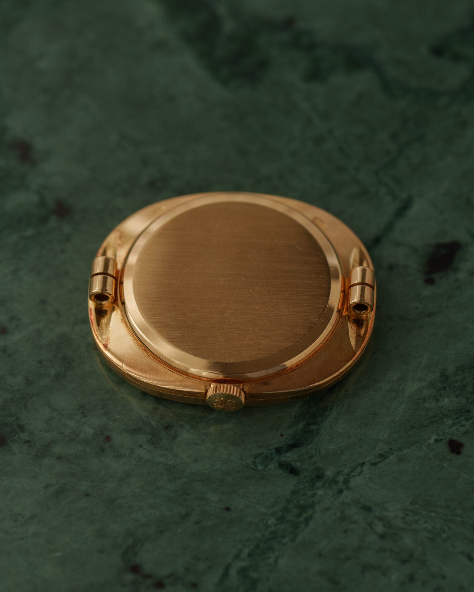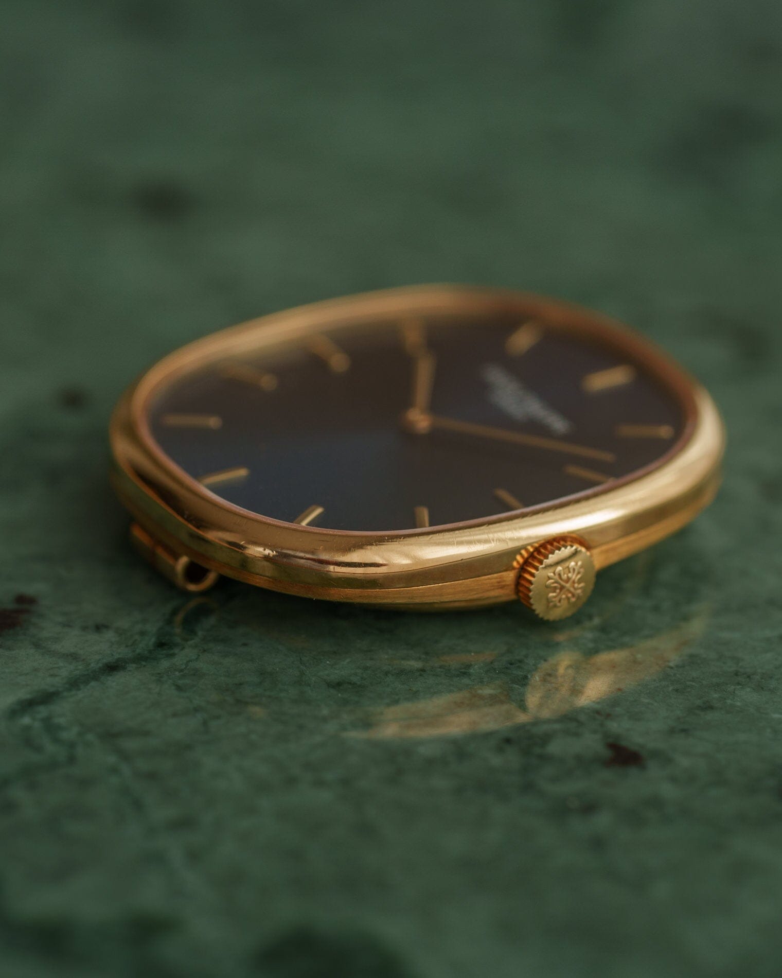こちらの時計は1980年代後半に製造された手巻きのゴールデンエリプス Ref.3848です。1968年に初めて発表されたゴールデンエリプスはそれまでのラウンドケースやレクタングルケースとは一線を画したデザインで、大きな衝撃を与えました。