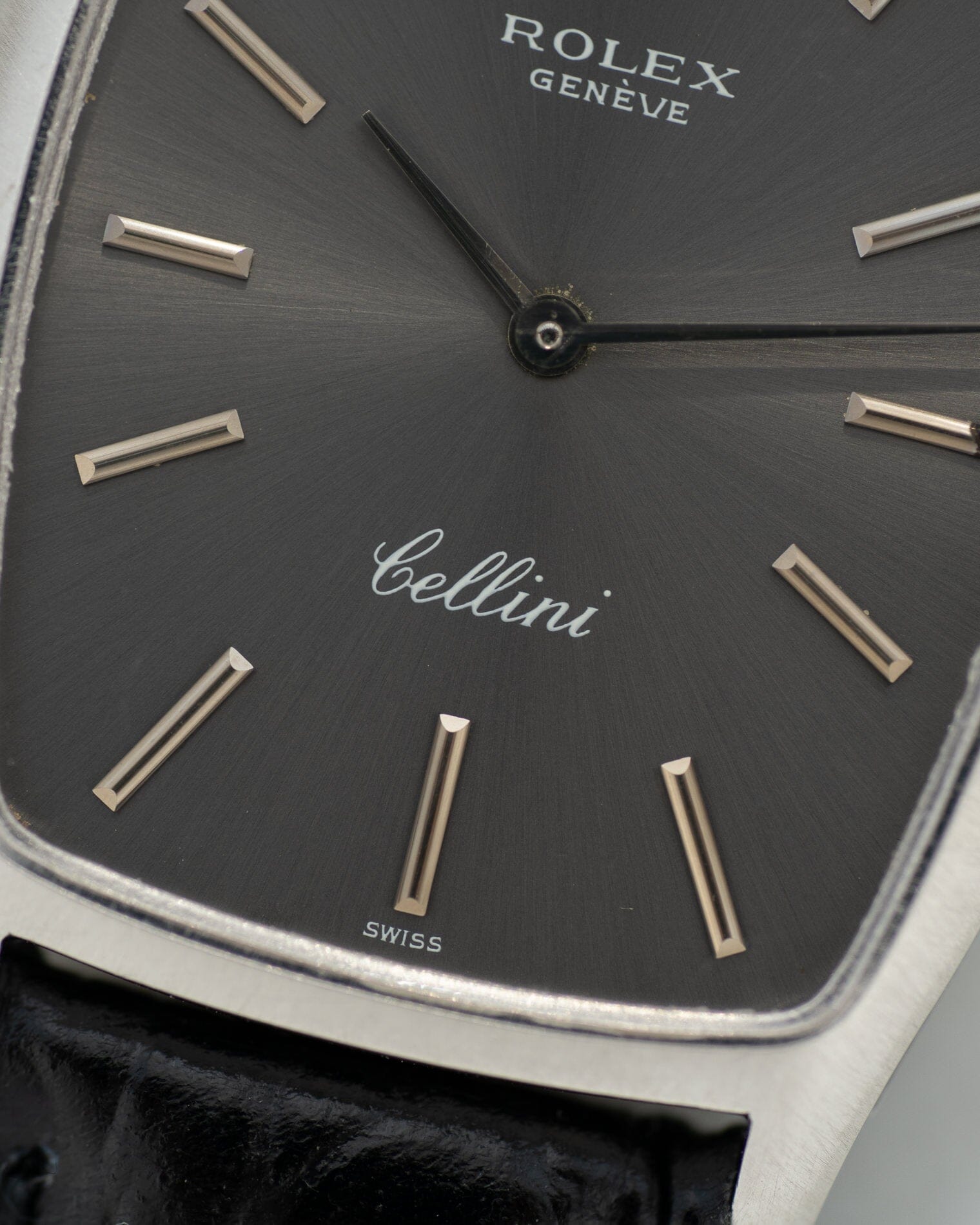 ロレックスとチェリーニの文字、そして6時位置のSWISS表示のみがホワイトのブラックとなっています。