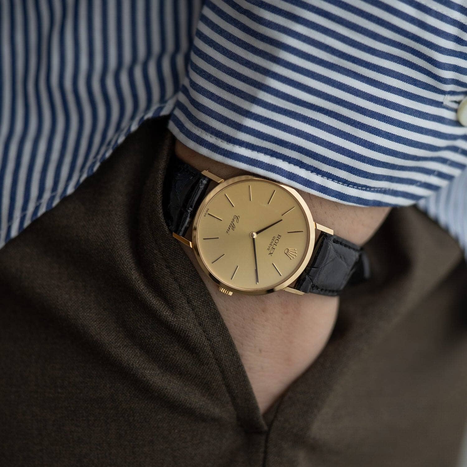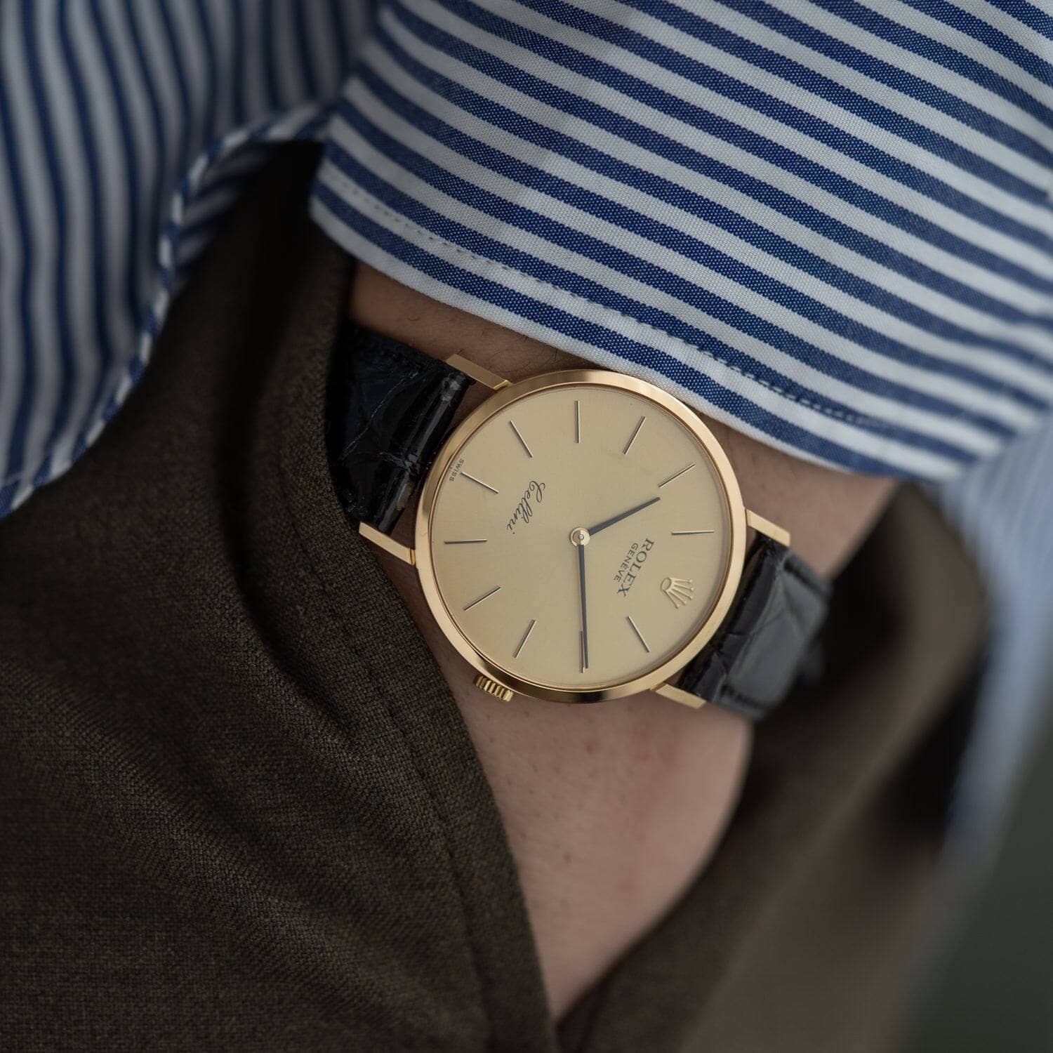 ロレックスの最大の特徴でもあるオイスターケースを使用せず、エレガントさにこだわったドレスライン、それがチェリーニです。