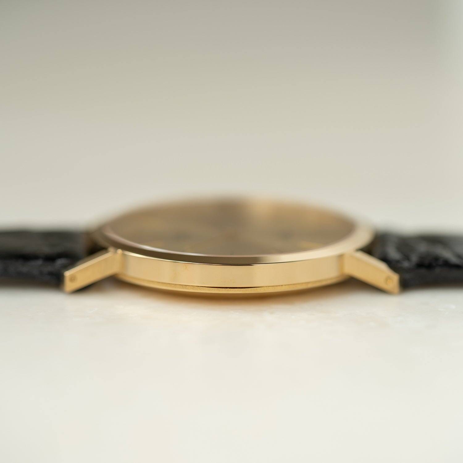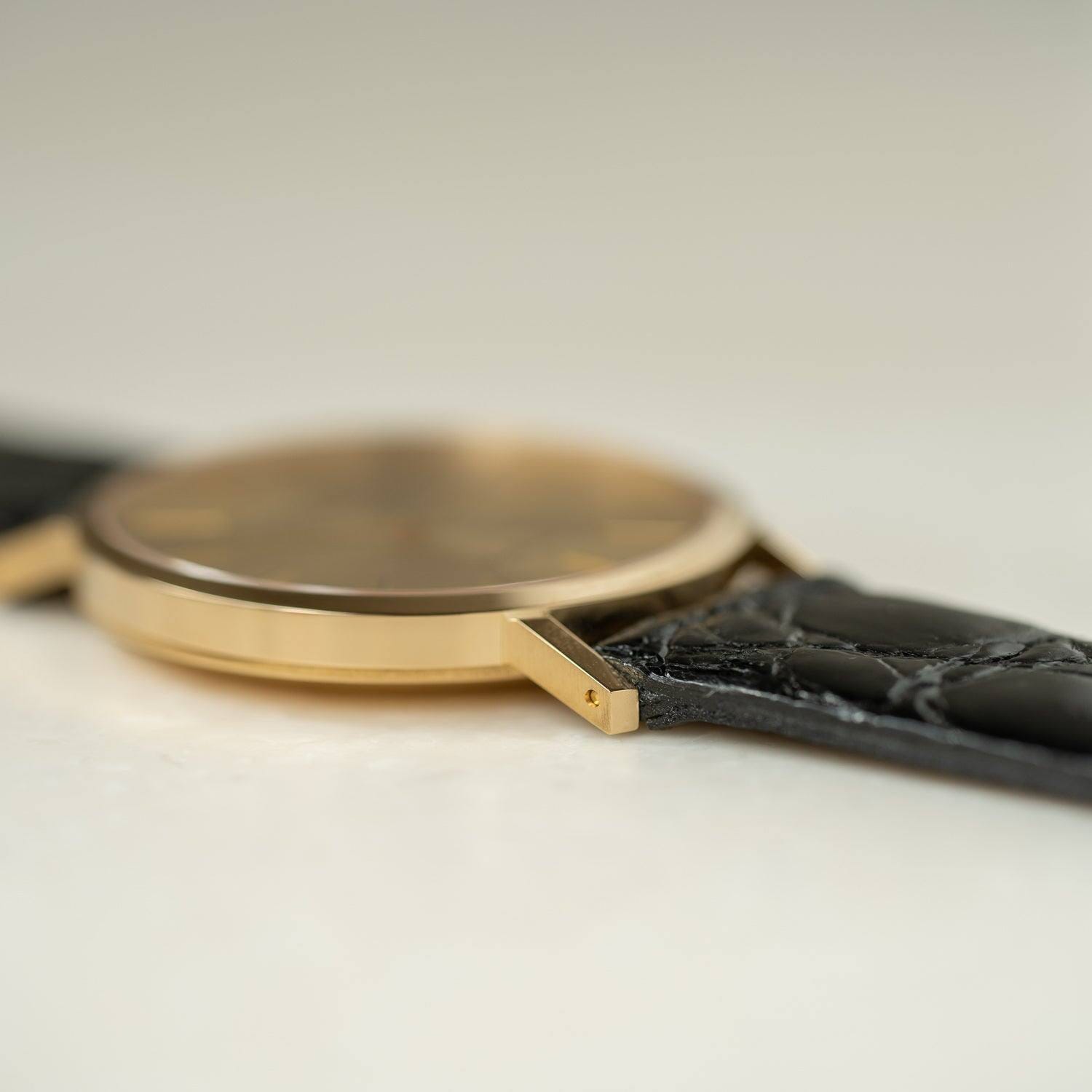 特にゴールドケースのドレスウォッチは貴金属ケースの良さを最大限に引き出す意味でも仕上げを施しています。