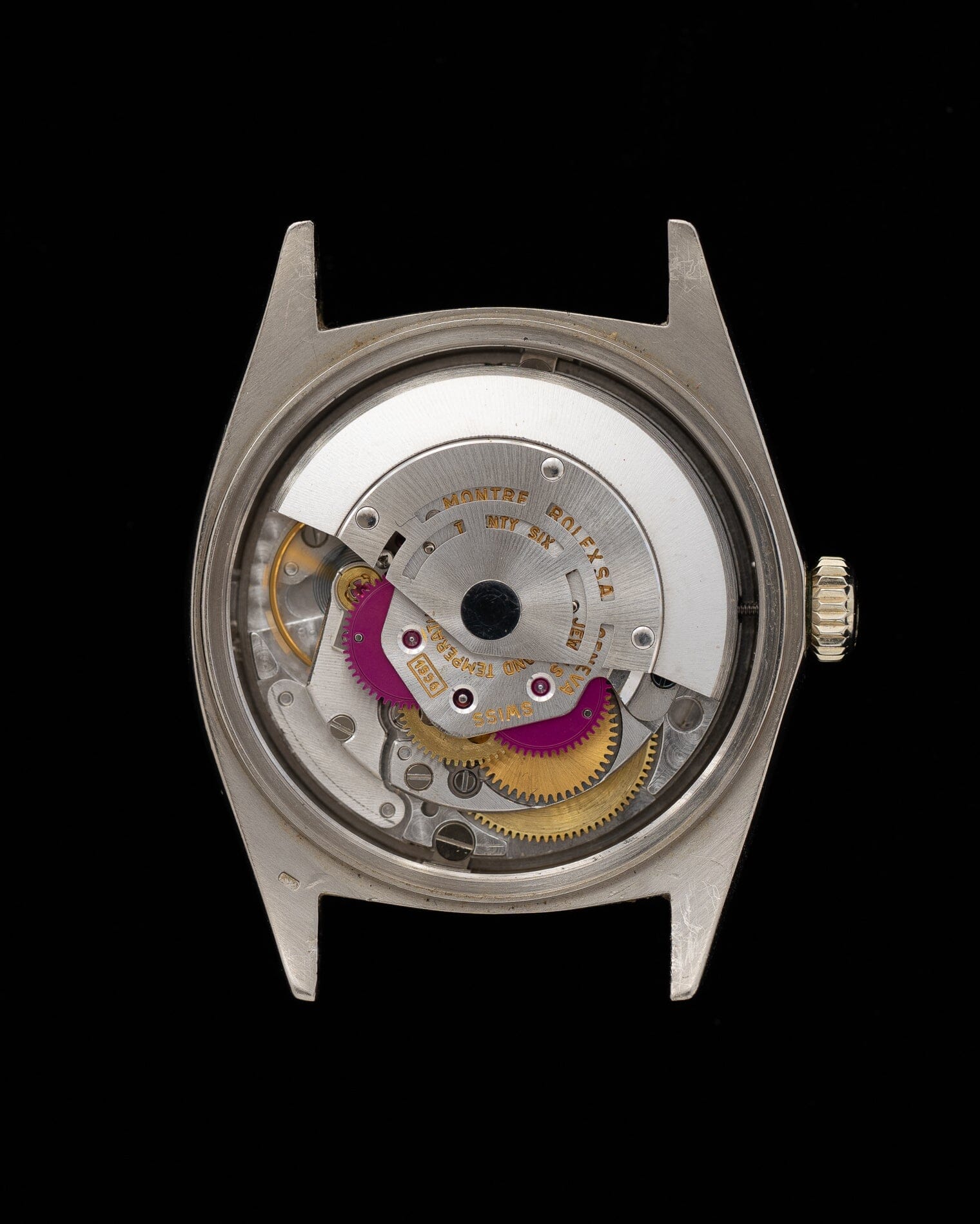ダイアルの外周が一段落ちており、凝縮されたデザインなのは同じ60年代のデイトジャストにも見られるヴィンテージならではのディテールです。