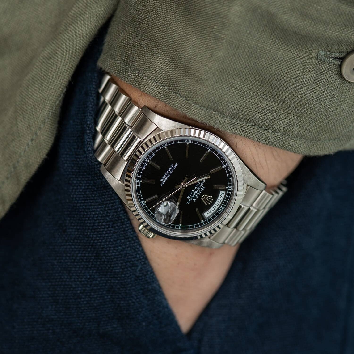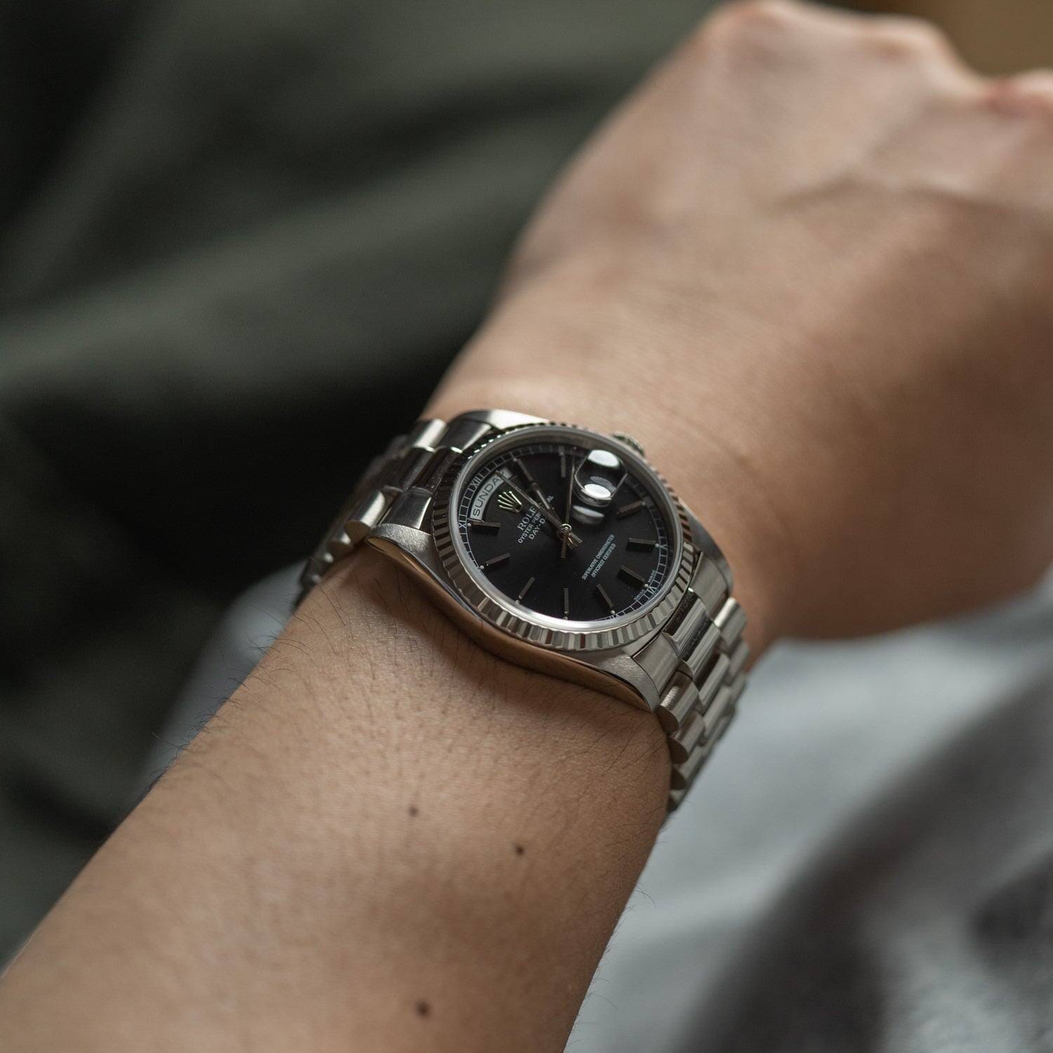 ホワイトゴールドのデイデイトはイエローゴールドと比べると数が少なく、日常でも気軽に使えるということで年々人気が高まっています。