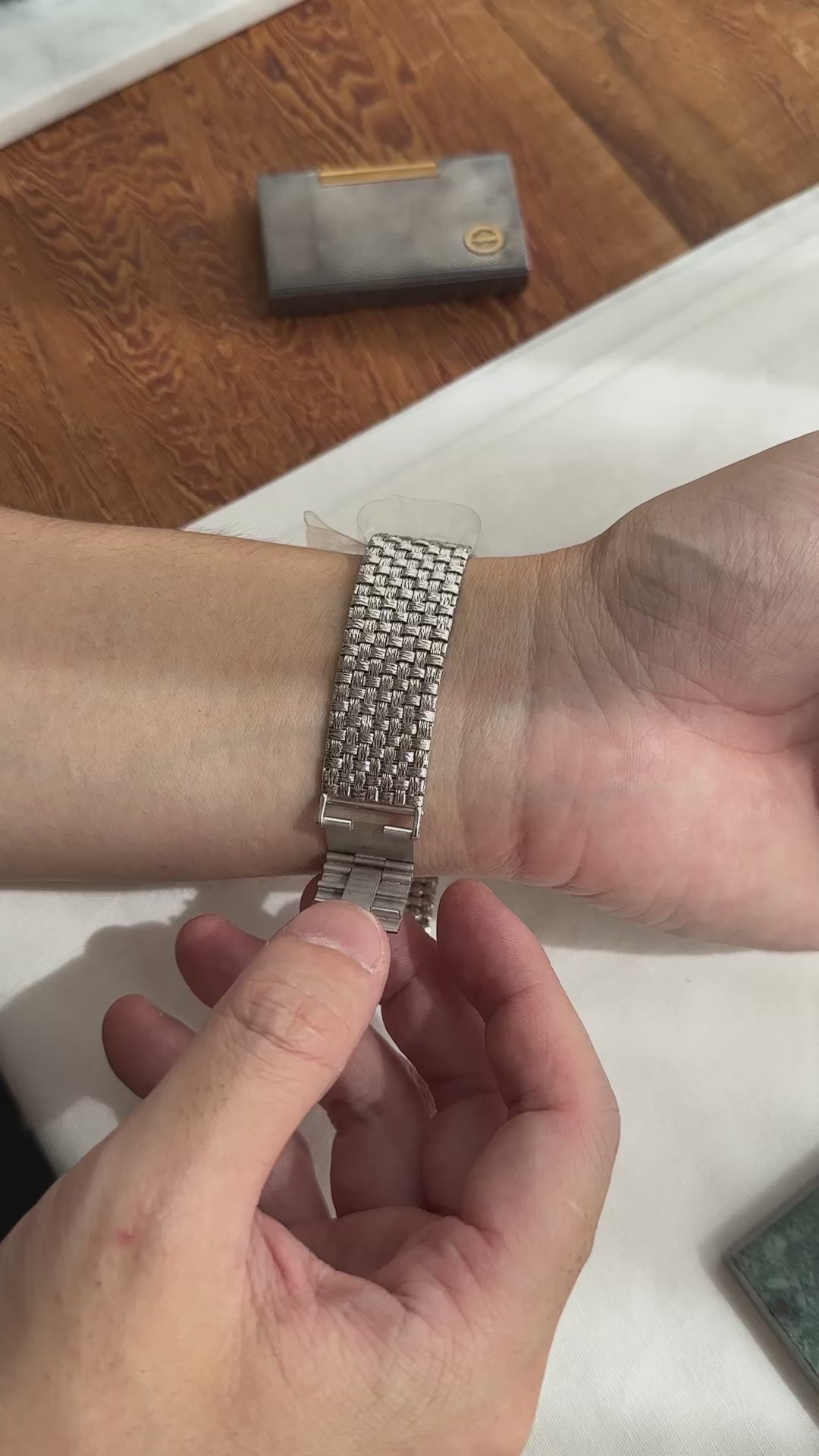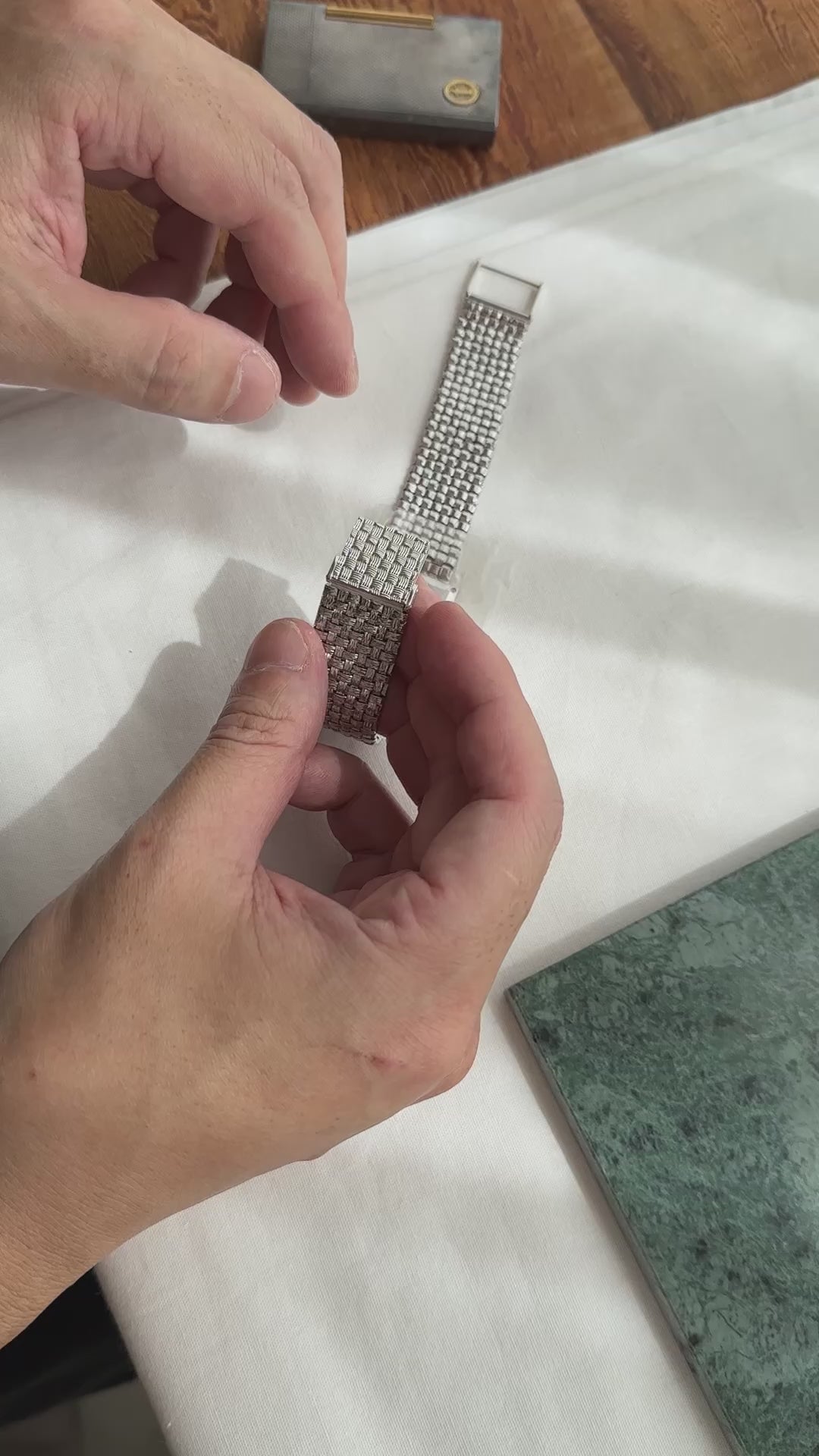 こちらの時計は1970年代に製造されたRef.7981 メッシュドールです。「Mesh d'Or」はmeshが「網の目」、d'Orが「黄金の」を意味します。サッカーのバロンドールはBallon d'Orと表記し黄金のボールという意味で、同じ用法です。